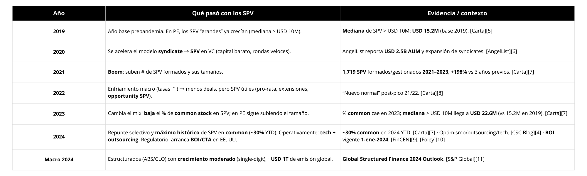 - Estructura & pricing. Tener playbooks por tamaño (micro-SPV vs > USD 10M): la curva de tamaño viene al alza desde 2019.